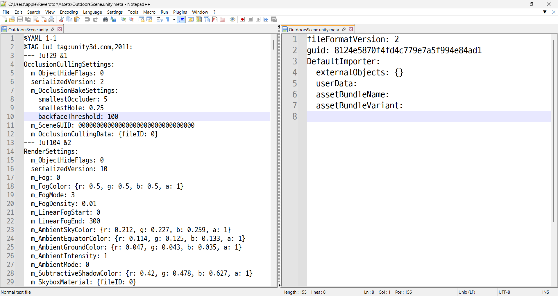 유니티에서 신을 저장하면, Scenename.unity 파일과 Scenename.meta 파일이 생성된다.