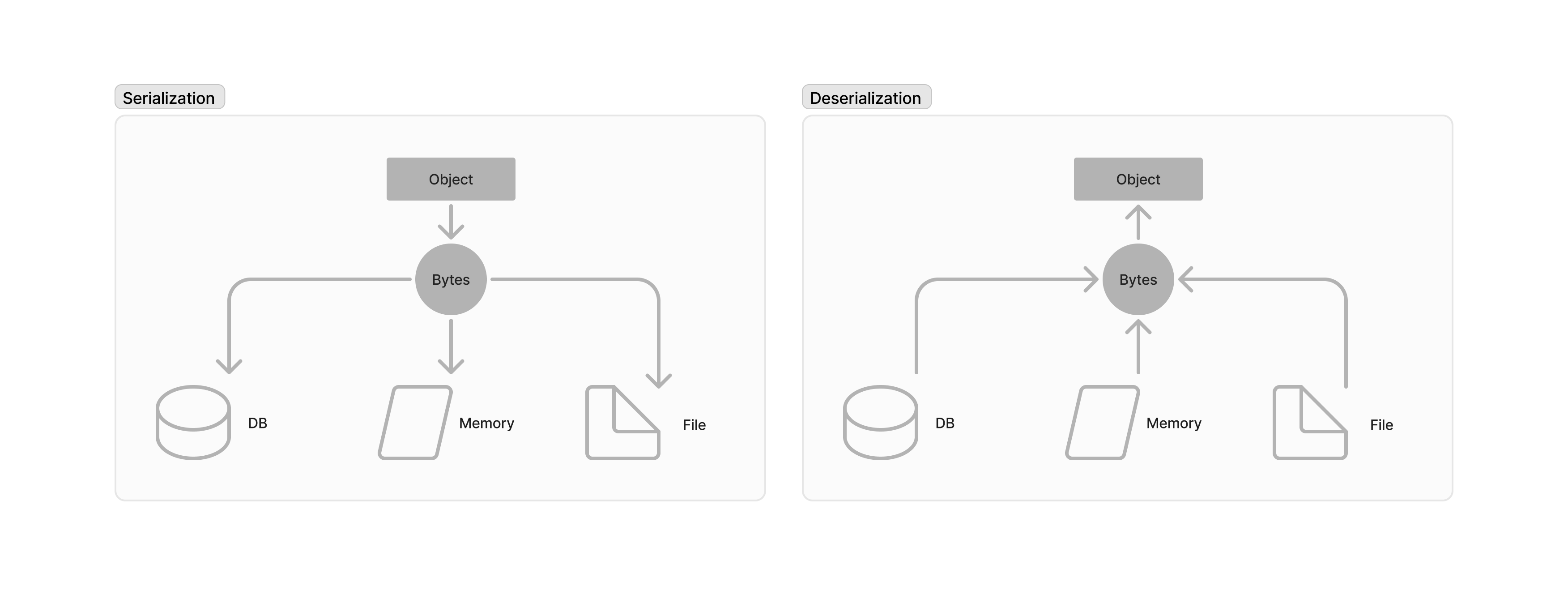 직렬화는 객체를 저장하거나 메모리, DB 혹은 파일로 전송하기 위해 객체를 바이트 스트림으로 변환하는 프로세스다. 즉, 객체를 해제하고(Serialization) 다시 복구(Deserialization)할 수 있도록 개체의 상태를 저장한다.