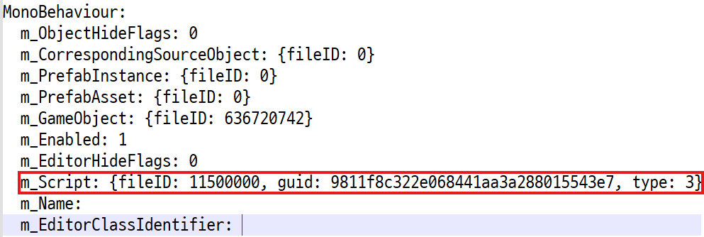 여기에서 GUID가 다시 사용되는 것을 볼 수 있다. 이는 스크립트는 외부 참조를 하기 때문에 이렇게 작성된 것이다.